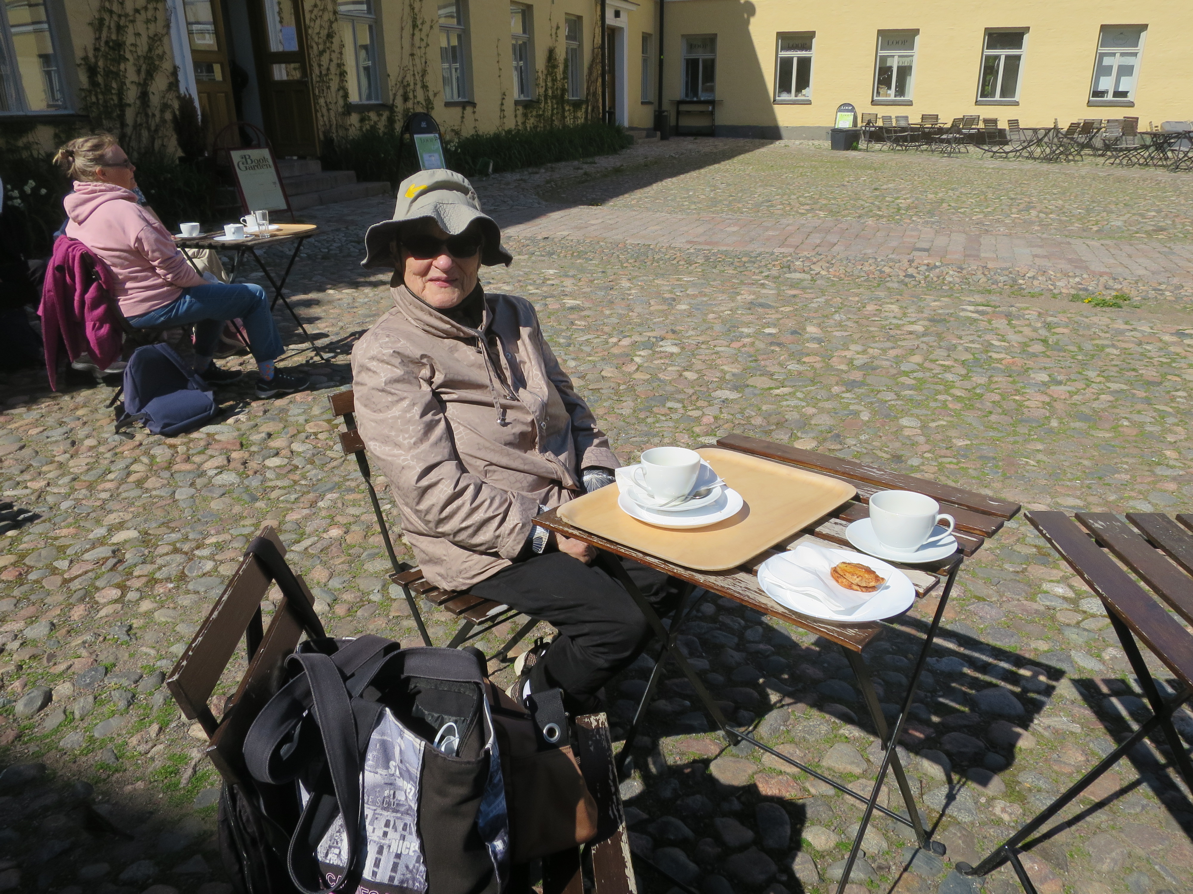 Kävelimme sitten hautausmaan läpi Lapinlahden Lähteen kahvilaan korvapuustikahveille. Juuri uunista tulleet kuumat korvarit maistui kyllä. Kahvittelun jälkeen kiersimme rakennuksen ympäri ja istuskeltiin puistonpenkillä auringon lämmittäessä mukavasti. Puiston puissa oli paljon lappuja ja yhden lapun yhteydessä oli Taika-tammen henki. Aika hauska. Kiitos Rva A, kun soitit ja lähdit mukaan.